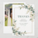 Delicate Romantic Flowers and Branches Frame Wedding Thank You Cards with Back Photo and QR Code.
