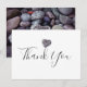 Cartão de agradecimento da descoberta do coração de pedra. Um lindo coração de pedra sentado acima da sua mensagem de agradecimento, definido numa bela fonte de caligrafia. O verso tem um fundo de pedra de seixo com um coração de seixo correspondente no centro. Uma maneira perfeita de dizer obrigado!