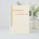 Expresse a sua gratidão com o nosso cartões de agradecimentos retrô-chic. Projetado para complementar o tema do seu casamento, esta carta apresenta um fundo amarelo claro com três faixas vibrantes em preto, amarelo e laranja à esquerda. A frente exibe o texto em negrito e um símbolo "+" amarelo exclusivo para "e". O dorso também é amarelo claro, proporcionando uma superfície lisa para mensagens personalizadas escrevendo. Perfeito para casais que querem uma maneira na moda e coesa de obrigado de seus convidados enquanto mantêm um toque moderno, mas nostálgico.