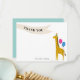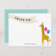 Este cartão de agradecimento plano tem muito espaço para escrever uma simples mensagem de "obrigado" aos doadores de presentes de aniversário após a celebração e apresenta uma faixa divertida e uma girafa usando um chapéu de festa com balões amarrados à sua cauda.