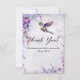 Cartão de agradecimento do beija-flor de orquídeas roxas