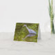 Cartão em branco com uma garça-cinza jovem e seu reflexo no rio Water of Leith em Edimburgo. Foto tirada no verão de 2025.