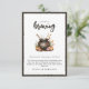 Abrace o charme do outono e a alegria de novos começos com nossos cartões de agradecimento de chá de bebê 'Bebê Está a Caminho'. Com uma mistura cativante de tradição e design moderno, esses cartões apresentam um caldeirão de aquarela adorável emoldurado por flores de outono e abóboras, tudo em um modelo editável. Mostre aos seus entes queridos sua gratidão envolta no calor do outono e na magia do seu novo bebê.