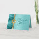 “Cartões de agradecimento para sweet sixteen” ou cartões de agradecimento para ocasiões especiais com modelos de texto personalizáveis. DESIGN - Este cartão dobrado tem uma linda corrente dourada incrustada com pérolas e diamantes, colocada entre um fundo de damasco azul pastel e azul turquesa infundido em suede falso. PERSONALIZE - Altere o monograma para o seu, adicione qualquer texto de sua escolha e sinta-se à vontade para alterar a cor do fundo interno e da fonte também, usando o botão “personalizar”. IDEAL PARA - Agradecimentos com tema de damasco para convidados de casamento, “chuva de noiva” com tema ocidental, aniversário, “sweet sixteen”, quinceanera, “festa de despedida” e eventos formais corporativos, funções, reuniões e festas. Eles também são ideais como cartões genéricos de “agradecimento”, “feliz aniversário” e “numeração de mesa”. LINHA COMPLEMENTAR DE PRODUTOS - Veja a linha completa abaixo. CORES DISPONÍVEIS - Visite nossa loja mensgifts para ver a gama completa de cores luxuosas neste design - http://www.zazzle.com/mensgifts* PEDIDOS PERSONALIZADOS - Se você gostaria deste design em outro produto, ou gostaria de discutir
