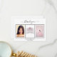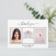 Um elegante e simples Cartões de agradecimentos Sweet 16 personalizado com sua própria foto. Adicione 3 das suas fotos de aniversário, tamanho vertical, uma data, nome e a nota de agradecimento. Um fundo branco chic com texto preto e um quadro branco. O texto: Obrigado na frente e seus nomes no verso são escritos com um roteiro à mão com na moda com hastes.