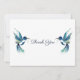 um design de aquarela decorativa de dois beija-flor de cor azul dizendo obrigado em um cartão de saudação.