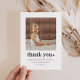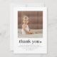Um moderno e doce cartão de agradecimento de 2º aniversário com a sua própria foto e a palavra 'obrigado' com um coração ao lado. Você também pode editar todas as cores e estilos de texto, além da cor do coração, se desejar. Basta clicar no botão 'Personalizar' -> 'Editar usando a ferramenta de design'.