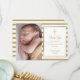 Batismo clássico com listras de ouro ou cartões de agradecimentos fotográfico batizante com uma cruz de ouro elegante e elegante, com uma borda de folha de ouro que enquadra seus detalhes definidos na tipografia moderna. Personalize com sua foto e seu obrigado especial de batismo ou batizante você escreve em tipografia quic nesta moderna e elegante design. Projetado por Thisnotme©