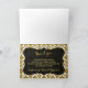 Convites de casamento glamorosos com damasco dourado e fundo preto semitransparente para texto. Aqui você pode encontrar convites, cartões de RSVP, selo postal, cartões de agradecimento, etc. Todos esses convites glamorosos e fashion são decorados em ambos os lados.