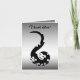 Este cartões de agradecimentos apresenta um dragão preto vivo e brincalhão dançando em um fundo de gradiente de cinza metálico. Mais dragões estão dançando dentro. O texto pode ser personalizado para atender às suas necessidades.
