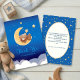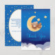 A dreamy baby shower thank you featuring a sleeping teddy bear on a glowing moon with soft stars in a night sky. This gender-neutral storybook design creates a cozy nursery feel and celebrates the joy of dreaming of a new arrival.