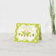 Bebês gêmeos bonitos em uma vagem de ervilha com faixa de chá de fraldas e fundo de poca-dot verde, obrigado bilhete.