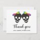 Duas noivas do crânio e confete em cores do arco-íris Casamento lésbico do Dia das Bruxas. Esta design de casamento apresenta os crânios de duas noivas com arcos em cores do arco-íris enquanto a parte de trás inclui um padrão de confete colorido na parte de baixo.