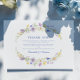 Uma design de casamento refinada e romântica com uma crista de monograma azul empoeirada, emoldurada por florais de aquarelas em lavanda pastel, blush e tons de pêssego. O layout inclui verde macio, serifa elegante e tipografia de script, e um formato de eterno perfeito para casamentos formais. Ideal para cerimônias de primavera ou verão com jardim, casa de mansão ou armação de capela. Totalmente personalizável com as iniciais, nomes, data, local e detalhes opcionais de recepção do casal. Um olhar moderno de herança com graça clássica.