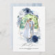 Flores azuis poeirentas e marinhos, obrigado de casamento, cartão com fotos