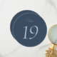 Elegant dusty blue wedding table number sign designed for modern and classic wedding receptions. The minimalist round design features refined script and serif typography, creating a timeless and sophisticated look for your wedding tables.