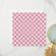 Pink and white checkerboard pattern with evenly spaced squares. The design is simple, creating a playful and retro feel.