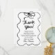 Este é um cartão de agradecimento de Chá de Noiva com Laço Desenhado à Mão Branco e Preto Caprichoso!