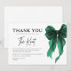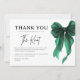 Expresse sua gratidão em um estilo atemporal com este Cartão de Agradecimento de Chuveirinho de Noiva She's Tying The Knot com Laço Verde. Projetado com um motivo de laço verde chique e tipografia moderna e limpa, este cartão é o toque final perfeito para agradecer aos convidados após um chuveirinho de noiva, celebração de noivado ou evento de fim de semana de casamento.