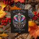 Um elefante branco e colorido é a peça central de um cartão de aniversário com a frase brincalhona Idade é irrelefante. Feliz aniversário que Jake escreveu sobre isso.