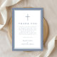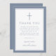 Cartão De Agradecimento Elegant Dysty Blue Religious Cross Baptism