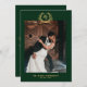 Wedding thank you card featuring an emerald green botanical crest with your photo and monogram. Elegant and customizable for expressing gratitude after your celebration.