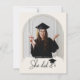 Express appreciation with this elegant graduation thank you card featuring a modern arch design and soft neutral colors. The clean and timeless layout makes it perfect for thanking friends and family for their support, gifts, and congratulations during graduation celebrations. This design pairs beautifully with matching graduation invitations and announcements to create a coordinated graduation stationery set. The template is fully customizable so buyers can personalize their thank you message with ease.