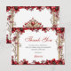Cartão De Agradecimento Elegant Red Golden Tiara Floral Quinceañera