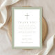 Cartão De Agradecimento Elegant Sage Green Religious Cross Baptism