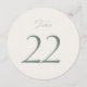 Elegant minimalist wedding table numbers featuring a refined sage green number design on a soft ivory background. These modern round table number signs are perfect for guiding guests to their seats while adding a stylish touch to your wedding reception décor.
