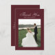 Express your gratitude in timeless style with this Elegant Script Burgundy Red Flat Thank You Card. Featuring refined calligraphy on a burgundy background, this note card is the perfect way to thank guests, family, or vendors after your celebration. Personalize with your names or message to create a polished, heartfelt keepsake that reflects the sophistication of your formal wedding.