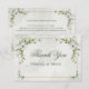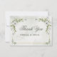An elegant wedding thank you card featuring soft white flowers, delicate greenery, and a refined gold frame for a timeless romantic look. The airy botanical details and graceful typography create a polished design that is perfect for garden weddings, formal celebrations, and coordinated wedding stationery suites. A beautiful choice for couples who love soft floral wedding accents with a fresh, classic, and sophisticated feel. This card is a lovely way to share heartfelt thanks after your wedding day.