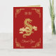 Cartão De Agradecimento Elegante Ano do Dragão Chinês Vermelho e Dourado