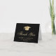 Elegante cartão de agradecimento de formatura preto com uma boina de graduação dourada, "Obrigado" em uma escrita dourada clássica e o nome do graduado, escola e ano de turma em tipografia moderna. No interior, personalize sua mensagem de agradecimento ou deixe em branco para uma nota manuscrita.