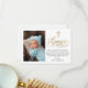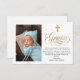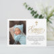Batismo Espanhol Moderno, elegante Obrigado Cartão com fotos. Design apresenta a foto de solteiro do bebê, o roteiro de tipografia ''Gracias'' em letras douradas manuscritas, a cruz dourada e a mensagem de seu obrigado.