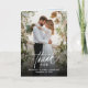 Este elegante cartões de agradecimentos de casamento apresenta um romântico design baseado em fotos, criando um eterno e um visual sofisticado. A frente mostra um "obrigado" sincero em uma letra elegante, complementando maravilhosamente o nome do casal personalizável e a data do casamento. O interior inclui espaço para uma colagem de fotos e uma mensagem pessoal de gratidão, perfeita para expressar apreço pelos seus entes queridos. Ideal para temas de casamento rústicos, boêmicos ou clássicos, esta design captura a essência do romance e da celebração, fazer-a como uma lembrança memorável para os seus convidados.