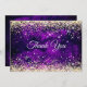 Cartão De Agradecimento Elegante monograma dourado falso com brilho roxo e