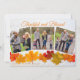 Este belo e moderno cartão com fotos da família de Ação de Graças apresenta uma colagem de 3 fotos sob as palavras agradecidas e abençoadas. Esta elegante fotografia em folha do outono com madeira branca tendenciosa atrás das folhas é um cartão de férias chique para decorar com fotos dos vossos filhos.