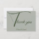 Expresse sua gratidão com este elegante cartões de agradecimentos de casamento verde sábio. Apresentando um design minimalista, mas sofisticado, este cartão personalizável é perfeito para recém-casados a obrigados convidados pelo seu amor e apoio. Personalize-o com seus nomes para um toque exclusivo. Ideal para casamentos, chás de panela, noivados e celebrações especiais.