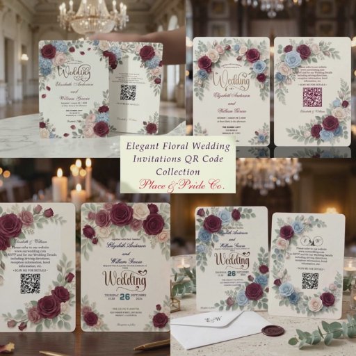 Elegant Floral Wedding Invitations QR CodeCriado por Istudor Nicolae Ionut