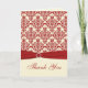 Este cartão de agradecimento em damasco creme e vermelho combina com o convite e outros itens mostrados abaixo.