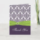 Este cartão de agradecimento em damasco verde lima e roxo combina com o convite e outros itens mostrados abaixo.