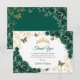 Cartão De Agradecimento Emerald Green Gold Floral Quinceanera