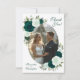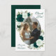Thank your wedding guests for their love and support with this beautiful photo card. Features your picture in an oval shaped frame surrounded by a bounty of hand painted watercolor roses in shades of emerald and sage green. The front of the card reads "Thank You" in elegant script lettering, with space for your names below. The back has room for a short note and signature. Wonderful ending to your new beginning!