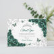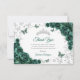 Emerald green silver Quinceanera celebration thank you card. Features, script font, butterflies, watercolor roses and tiara. Perfect for an elegant princess style glam celebration. Personalize with your own details.