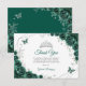 Cartão De Agradecimento Emerald Green Silver Floral Quinceanera