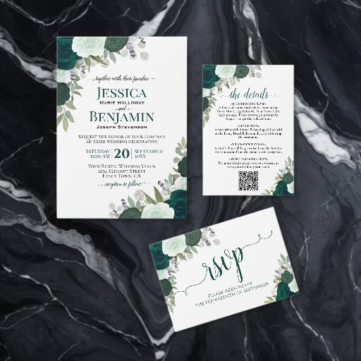 Emerald Green Watercolor Roses Boho Wedding SuiteCriado por Cat Ritchie