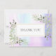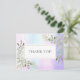 Um cartão de agradecimento empresarial moderno e holográfico com folhas macias da primavera. Com delicadas folhas em aquarela emoldurando sua mensagem de agradecimento em tipografia elegante. Você pode personalizar com sua própria mensagem de agradecimento e nome no verso ou, se preferir, adicionar sua própria mensagem manuscrita excluindo o texto. Uma maneira perfeita de dizer obrigado aos seus clientes. Desenhado por Thisisnotme©