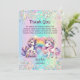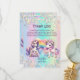 Mostre sua gratidão com este cartões de agradecimentos encantador de unicórnio! Com dois adoráveis unicórnios, um arco-íris, e sotaques reluzentes, esta carta é a maneira perfeita de dizer obrigado aos convidados que fizeram mágicos o aniversário do seu filho. Personalize-o com o nome do seu filho e a data da festa para uma guarnição atenciosa e memorável. As cores pastel e a design branca criam uma bela maneira de expressar sua apreciação pelas memórias compartilhadas e tempos divertidos!