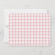 Garota bonita de cavalo azul balançando do berçário do apartamento... obrigado a registrar cartão com gingham rosa e branco de volta.